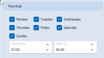 The rule passes if the current day is one of the selected days and also the current time is between the two times shown.
