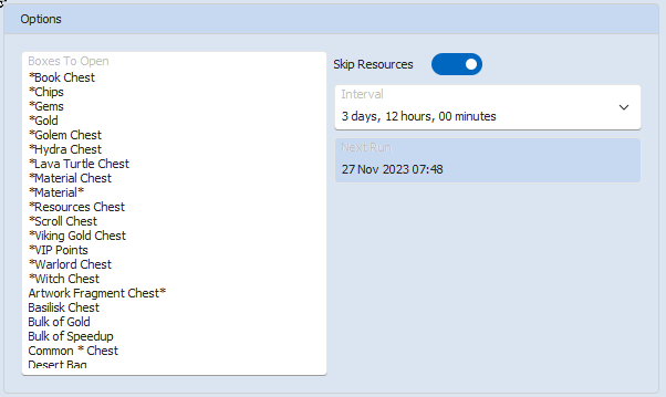 Any unrecognised boxes will be displayed in the log and also written to a file.You can open this file to and copy paste entries from it to add them to the "Boxes To Open" list. The file location will be displayed in the log when the routine ends.