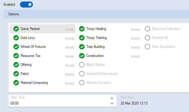 Enabled subroutines will display "Ready" next to them. Once complete, that will change to "Done". If you want to run a subroutine again, disable then re-enable it. YOu can do this for all subroutines by disabling the main routine then re-enabling it again.