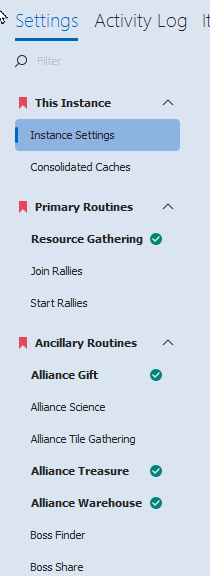 When a routine is enabled, its name will be bold and a small green check will appear next to it. This lets you quickly see exactly which routines will be run for the visible instance.
