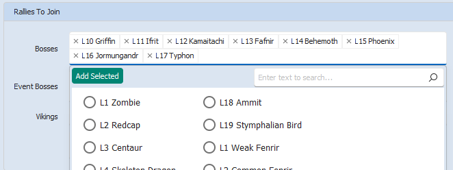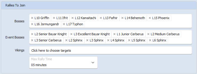 This is a list of all the the rally types you want to join. You can add or remove the various bosses from the list.