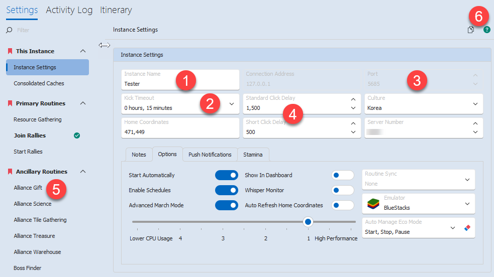 - Name of your Instance. Use the same name as your instance in Bluestacks.