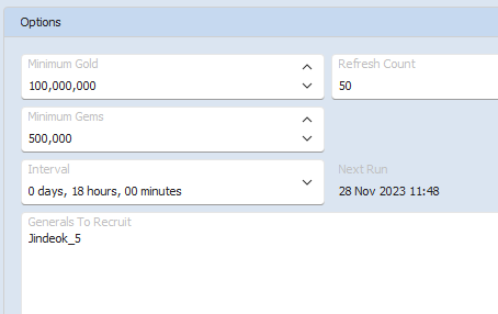 This routine will visit your tavern on the interval you choose and attempt to find specific Generals.