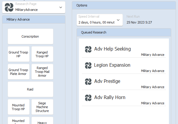 When the routine is looking for your technology to research, it will locate it in the Research Tree. If any pre-requisites for that research are not met, it will navigate to the previous item and repeat the process. It will continue working backwards until it reaches technology that is not blocked and will start researching it.